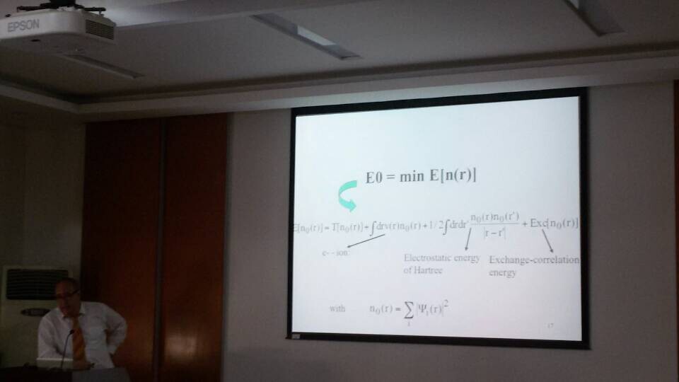 2014年10月27日上午10点,pg娱乐电子游戏官网入口物理科学与核能工程学院在主楼513举办题为“使用纳米级的建模与仿真技术探索材料表面及界面性质”的报告会。此次报告会旨在为老师和同学们提供交流的平台来分享学术与科研的成果和思想。此次我们邀请到了法国里尔大学教授Ali Zaoui。他在多种物质类型,包括半导体、金属、陶瓷、粘土、矿物质以及纳米复合材料上成绩显著。报告中教授首先介绍了最新的应用第一性原理、分子动力学以及蒙特卡洛模拟方法对多个系统进行分析的理论研究结果。其次,他还向我们介绍了一些有关物质表面、界面、杂质和缺陷的知识,以及在原子水平分析物质电学、磁学、动力学以及热力学的方法。最后Ali Zaoui耐心地回答了老师和同学提出的各种问题。