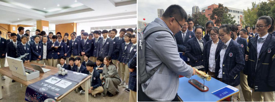 此外,招生组还在镇江中学进行歼-20航模,天舟一号与天宫二号对接模型,cellrobt模型的展示及相关讲解,通过讲解理论模型。播放宣传视频,进行实际操作等形式向同学们介绍了北航近年所取得得卓越成就。