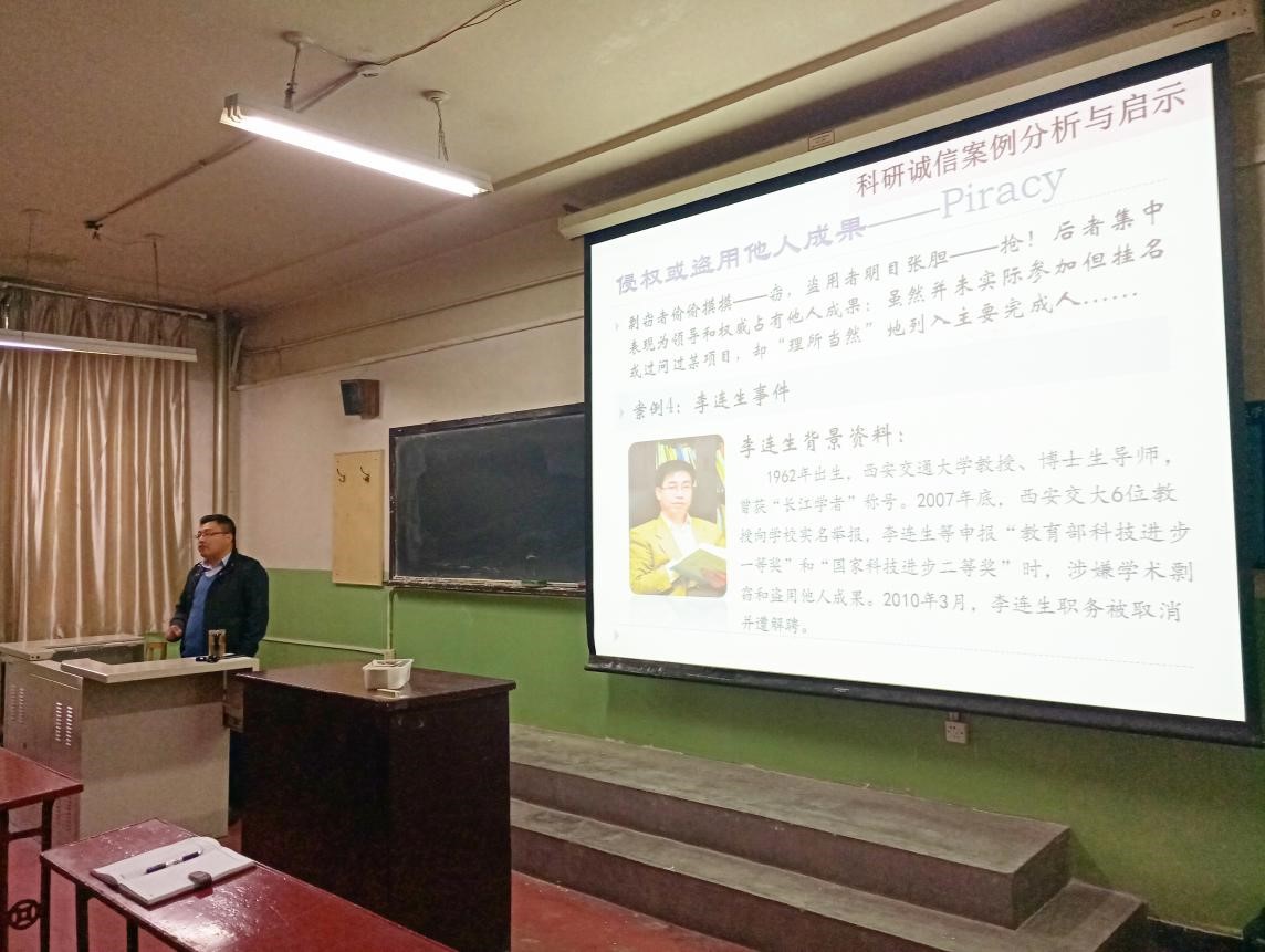 为进一步推进我院研究生科学道德和学风建设宣传工作,强调学术道德与学风建设的重要意义,提升研究生自身素质的同时恪守科学道德规范,物理科学与核能工程学院于11月5日13:00召开了学术道德讲座。本次讲座由副书记王雷华老师主讲,全体研究生新生参加了此次专题讲座。
