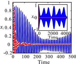 图2.系统中的无耗散行为(坐标的平均值随时间的演化)