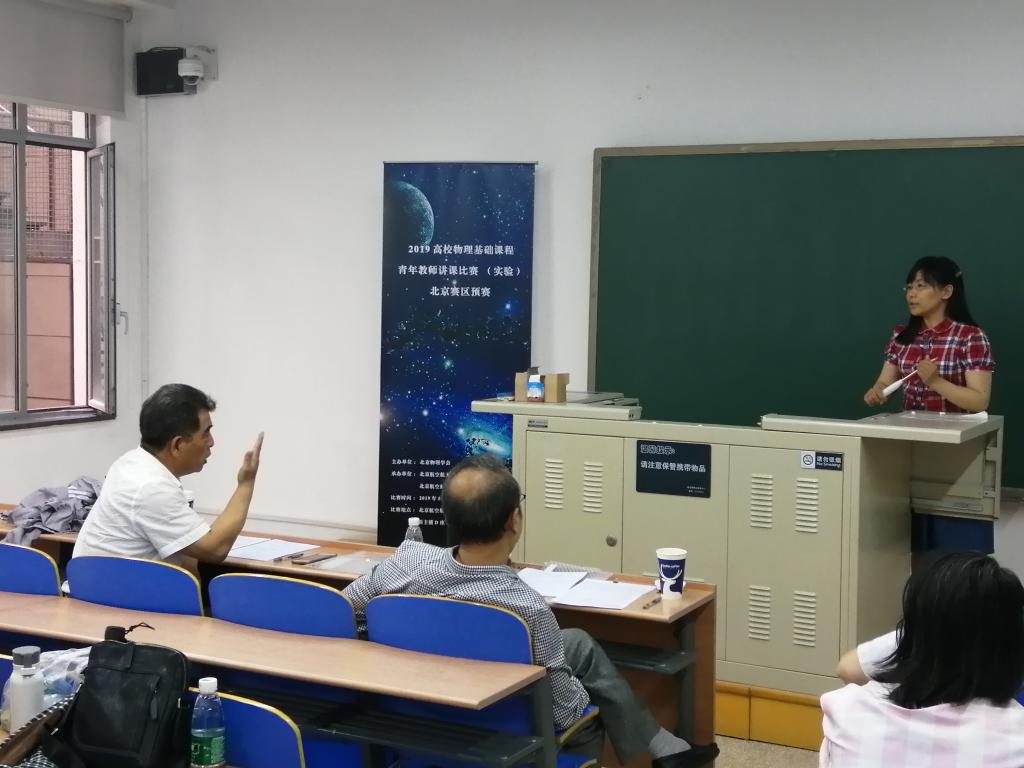 2019高校物理基础课程青年教师讲课比赛北京赛区预赛由北京市物理学会主办,北航pg娱乐电子游戏官网入口承办,于2019年5月18日在北航新主楼成功举办,获得了主办方北京物理学会及参赛各高校老师的一致好评。讲课比赛的程序是每位选手抽取比赛题目,然后用1小时时间备课,比赛时每人讲15分钟,回答评委提问10分钟。更为可喜的是,北航pg娱乐电子游戏官网入口的两位青年教师王菁和熊畅在比赛中表现突出,分获该项赛事的一等奖和二等奖,其中获得一等奖第一名的王菁老师将作为北京赛区代表参加6月初的华北赛区复赛。