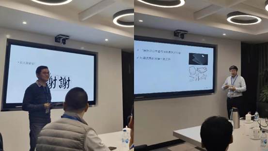 接着,来自pg娱乐电子游戏官网入口不同专业和方向的博士后进行了科研交流和探讨。陈科、李凯文、隋济泽、刘聚哲、昱万程、邓乐庆、周小朋、杨杰、郝锐等就位博后分别作了题为《仿生轻质高强微纳米复合材料研究》、《CT图像重建和材料分解》、《高分子/胶体软物质系统动力学》、《3d金属非晶体纳米材料的制备研究》、《机器学习在高分子物理中的应用》、《钾离子电池电极材料研究》、《暗物质探测器PandaX-4》、《碱金属二次电池电极材料研究》、《基于生物质碳纳米材料构筑能源储存器件》的学术报告。