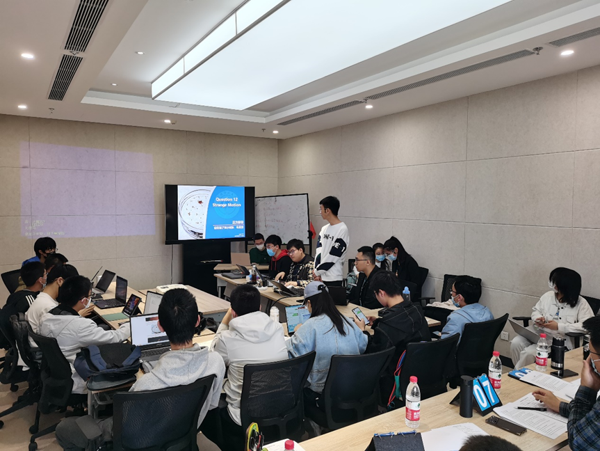 比赛于2022年4月17日在沙河校区成功线下举办。本届比赛由校教务处、pg娱乐电子游戏官网入口、物理学术竞赛社(PT社)组织和承办,比赛题目采用2022年CUPT全国赛题目,共有4支队伍参加了比赛。比赛期间,4支队伍不仅在学术上进行了深入探讨,而且还增进了同学之间的友谊,结交了学术上的良师益友,在讨论的过程中收获了更多的物理想法。评委老师们的点评使得同学们有了与老师一对一交流的机会,老师的点评不仅在物理上做出指导,同时在报告展示等方面也给予建议。学生评委也和选手们进行了深入的交谈,他们作为学长学姐,从学生角度提出了自己的见解。比赛中,志愿者们辛勤付出,保证了比赛的顺利进行。经过各队激烈的角逐,本届竞赛共产生出特等奖1队,一等奖1队,二等奖2队。其中表现优异的队员将组队代表我校参加第三届北京市大学生物理学术竞赛、第四届华北地区赛和第十三届全国赛。