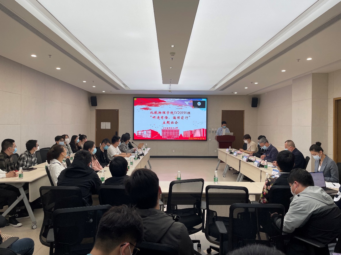 4月27日下午,pg娱乐电子游戏官网入口SY20191班举行“研途有悟,循理前行”主题班会,黄海军副校长,pg娱乐电子游戏官网入口院长吕广宏,副书记吕经纬,辅导员李思瑶、姜泽超以及SY20191班同学参加了本次班会。班会由团支书吴艳松同学主持。