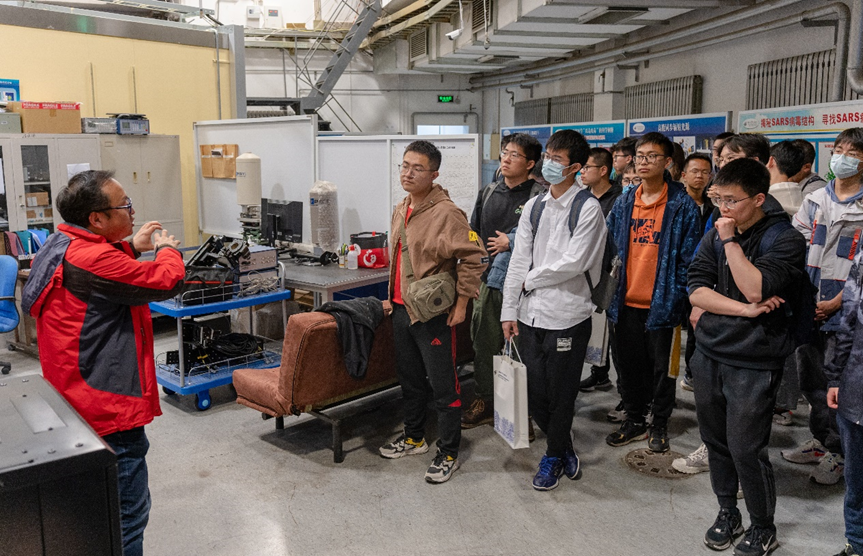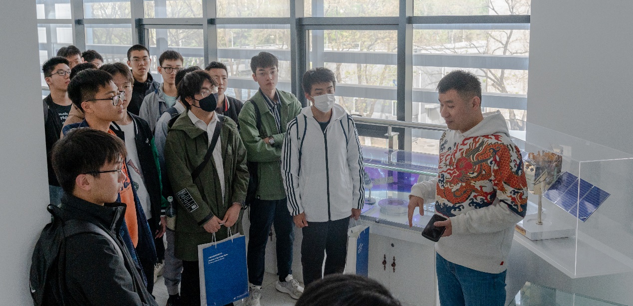 接着,全体学生来到了BEPCII对撞区,参观了粒子天体物理中心。助理研究员尹倩青热情详细地介绍了粒子天体物理中心的诸多设备、众多卫星、卫星的功能以及高能物理在其中发挥的作用与意义,同学们更真切地了解到高能所的工作内容和意义。