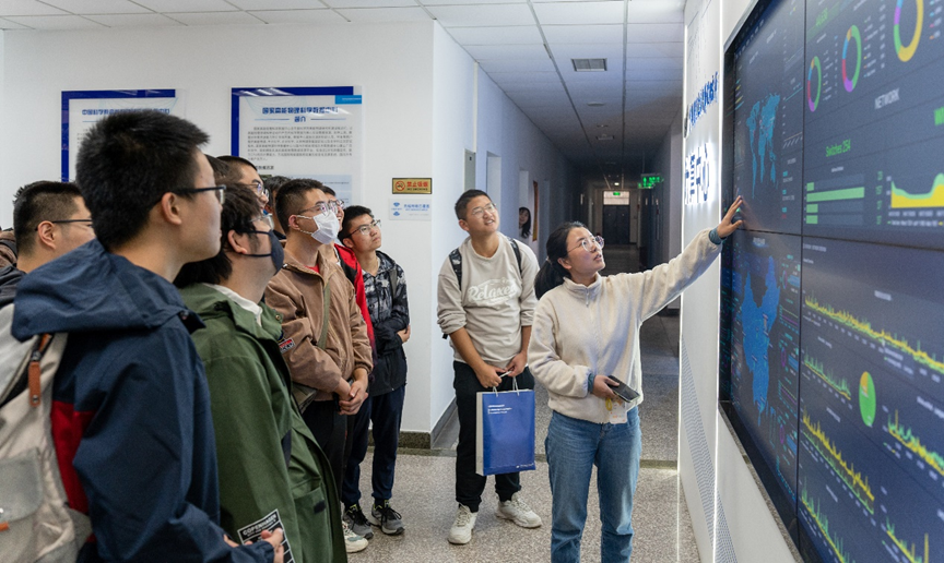 最后,同学们随博士后符世园参观了计算中心,深入计算中心内部,看到了海量的计算数据,超大内存、超快处理速度及超多的待处理任务令同学们大开眼界。