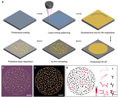 图1 PUF的制作流程、光学表征及类“凯西树”分形结构模型