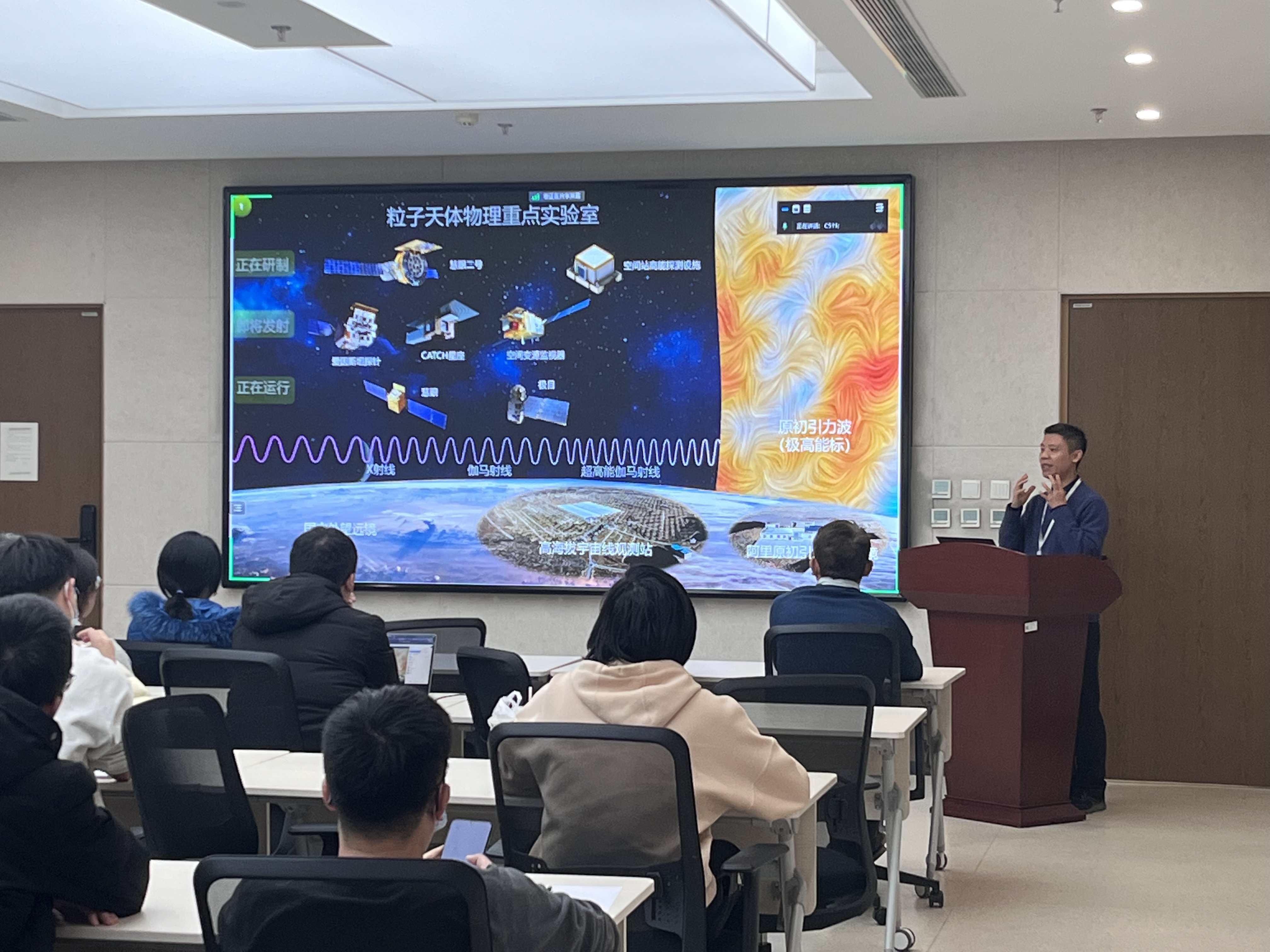 熊少林研究员为pg娱乐电子游戏官网入口的师生做“宇宙最剧烈爆炸之谜”的学术报告,报告会后,熊少林研究员回答了老师和同学们的问题,现场交流气氛热烈。