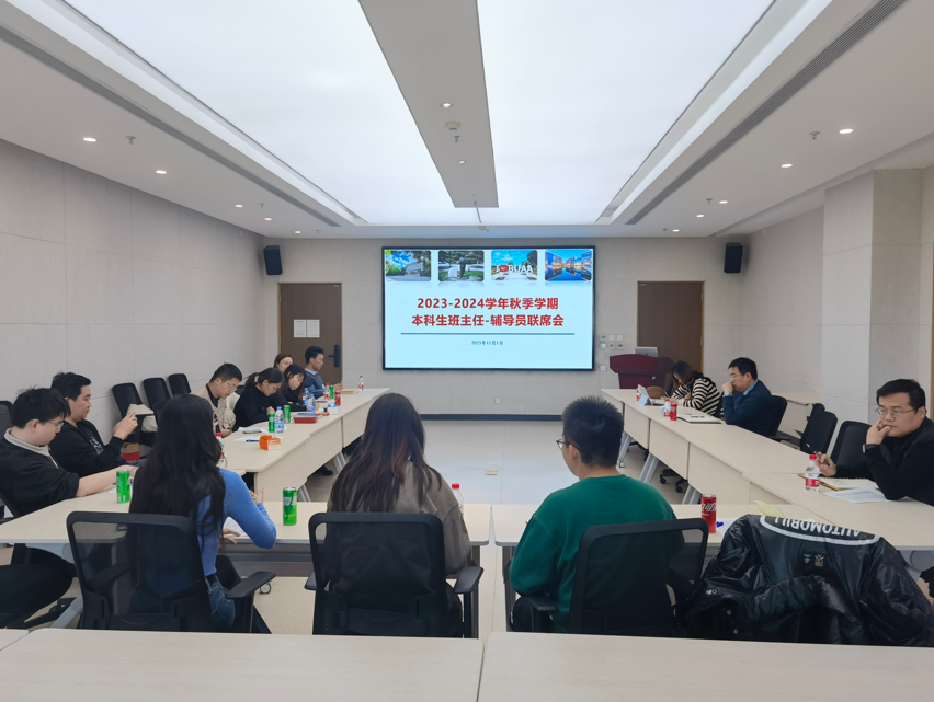 2023年12月1日中午12:00,2023-2024学年秋季学期本科生班主任-辅导员联席会在沙河校区主楼C511会议室举行,pg娱乐电子游戏官网入口党委书记李广超、党委副书记齐建立、本科生各班班主任、专职辅导员李思瑶和本科生各兼职辅导员出席了本次会议。