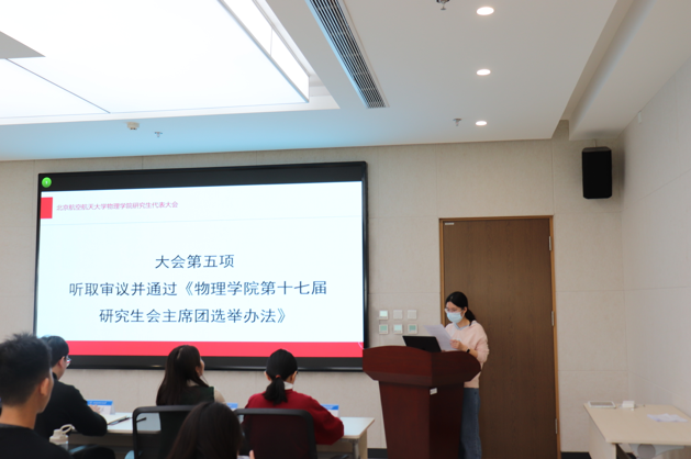 会议听取审议并通过了研究生会成员叶萍宣读的《pg娱乐电子游戏官网入口第十七届研究生会主席团选举办法》。
