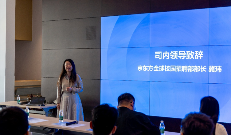 在交流答疑环节,冀玮部长对员工发展空间、公司福利体系等同学们比较关心的问题进行了详细的解答,同时她表示京东方对新入职的校招生设置了长期完善的培养机制、清晰明确的成长路径和科学的薪酬体系,致力于实现对企业员工的全方面保障。