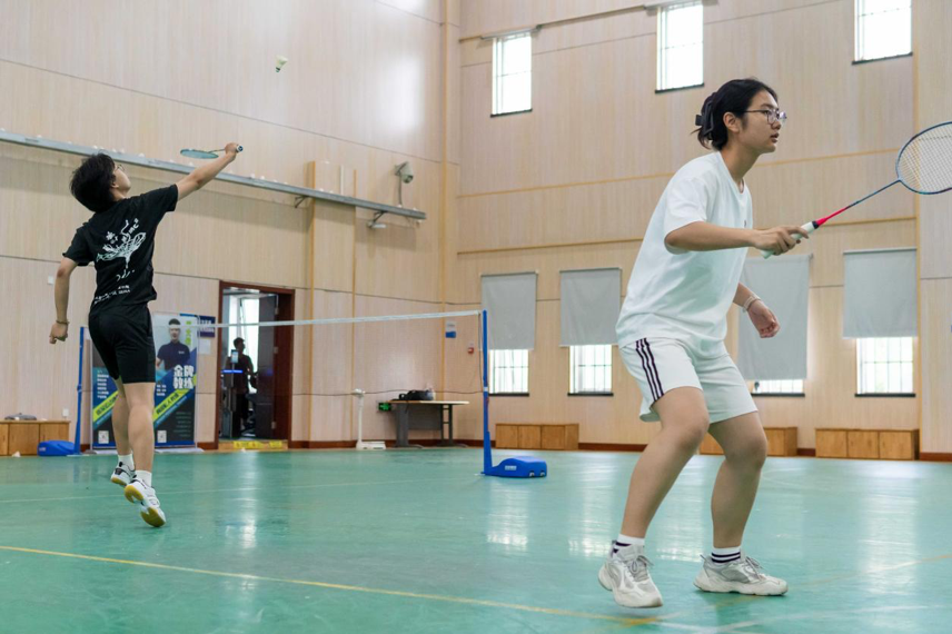 单打、双打、混双,偌大的体育馆内,随处可见矫健灵活的脚步,轻盈飘逸的身姿。赛场之上,有孤胆英雄的实力对决,有默契队友的团结合作,亦有男女之间的互帮互助,腾挪的步伐,挥洒的汗水,胜利的欢呼,成功的击掌,每一名队员都在倾其所有,输出着自己的努力、拼搏与真诚。