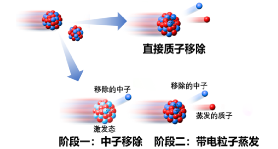 电荷改变反应截面包含了两个过程的贡献。第一个是直接移除过程,即在反应中直接移除质子(或其他带电粒核子)的过程,这一过程可以由Glauber模型理论计算。另一个过程为质子蒸发过程,分为两个阶段:在直接反应阶段首先移除一个或多个中子,留下一个高激发态的剩余核;剩余核随后级联蒸发出带电粒子(通常为质子)。