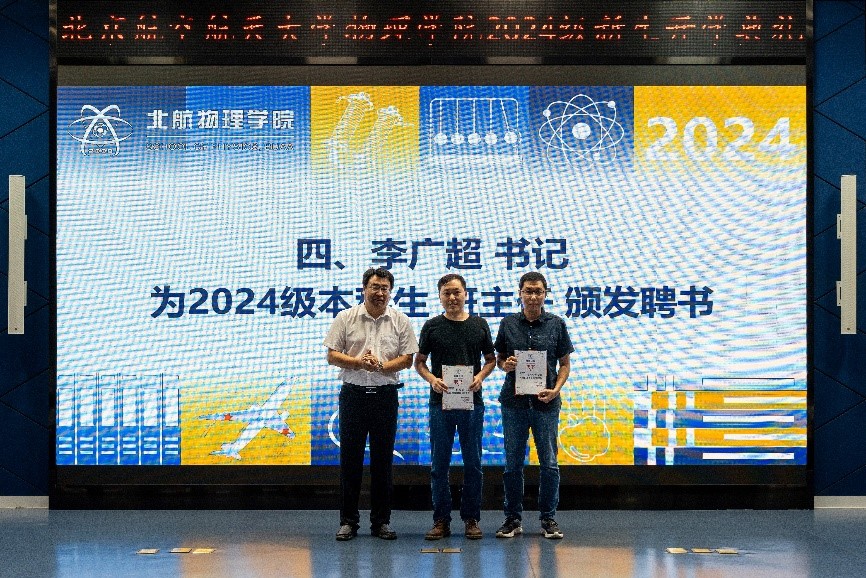 李广超书记为 2024 级本科生强基计划班主任赵润东老师、拔尖计划班主任金文涛老师颁发聘书。