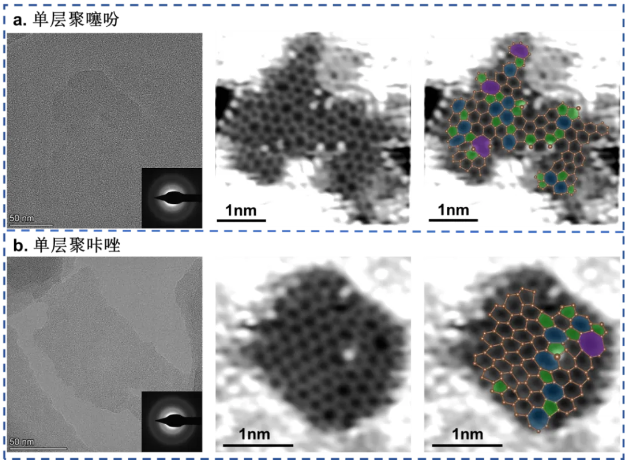 图3. 普适性合成策略制备(a)单层聚噻吩和(b)单层聚咔唑