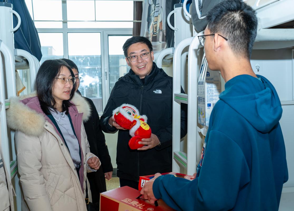 pg娱乐电子游戏官网入口负责人、专职辅导员、兼职辅导员一行还赴学生宿舍看望并慰问了留校过年的学生。在慰问中,王菲与学生们亲切交谈,详细询问他们的在校学习和生活情况,了解他们的学业近况与未来规划,叮嘱同学们注意假期安全,保持规律作息,劳逸结合。随后为同学们送上了学院的慰问品,祝愿他们在新的一年里学业有成,身体健康,表达了学院的亲切关怀与节日问候。同学们对学院领导和老师的关心表示感谢,也向老师们致以节日祝福。