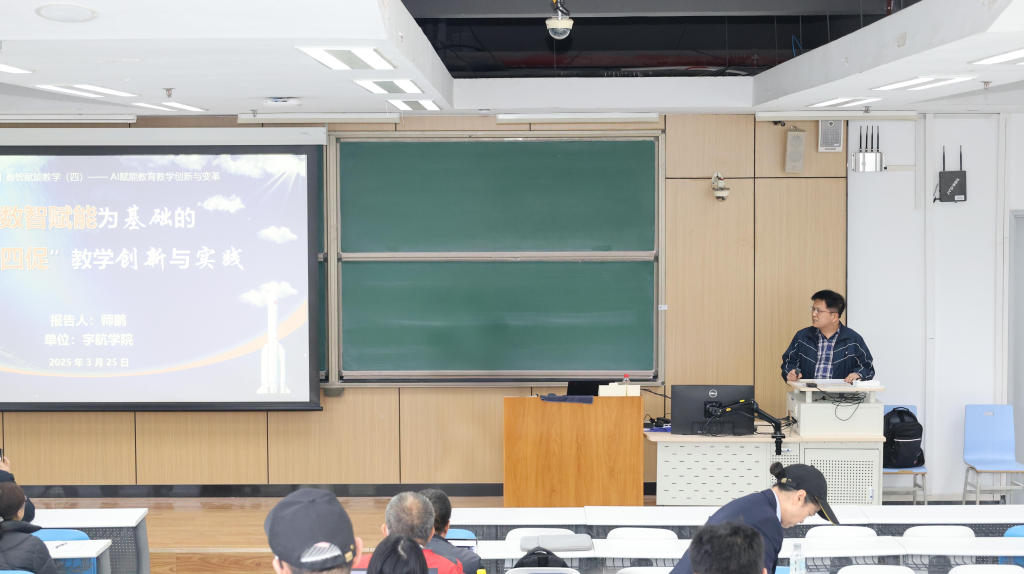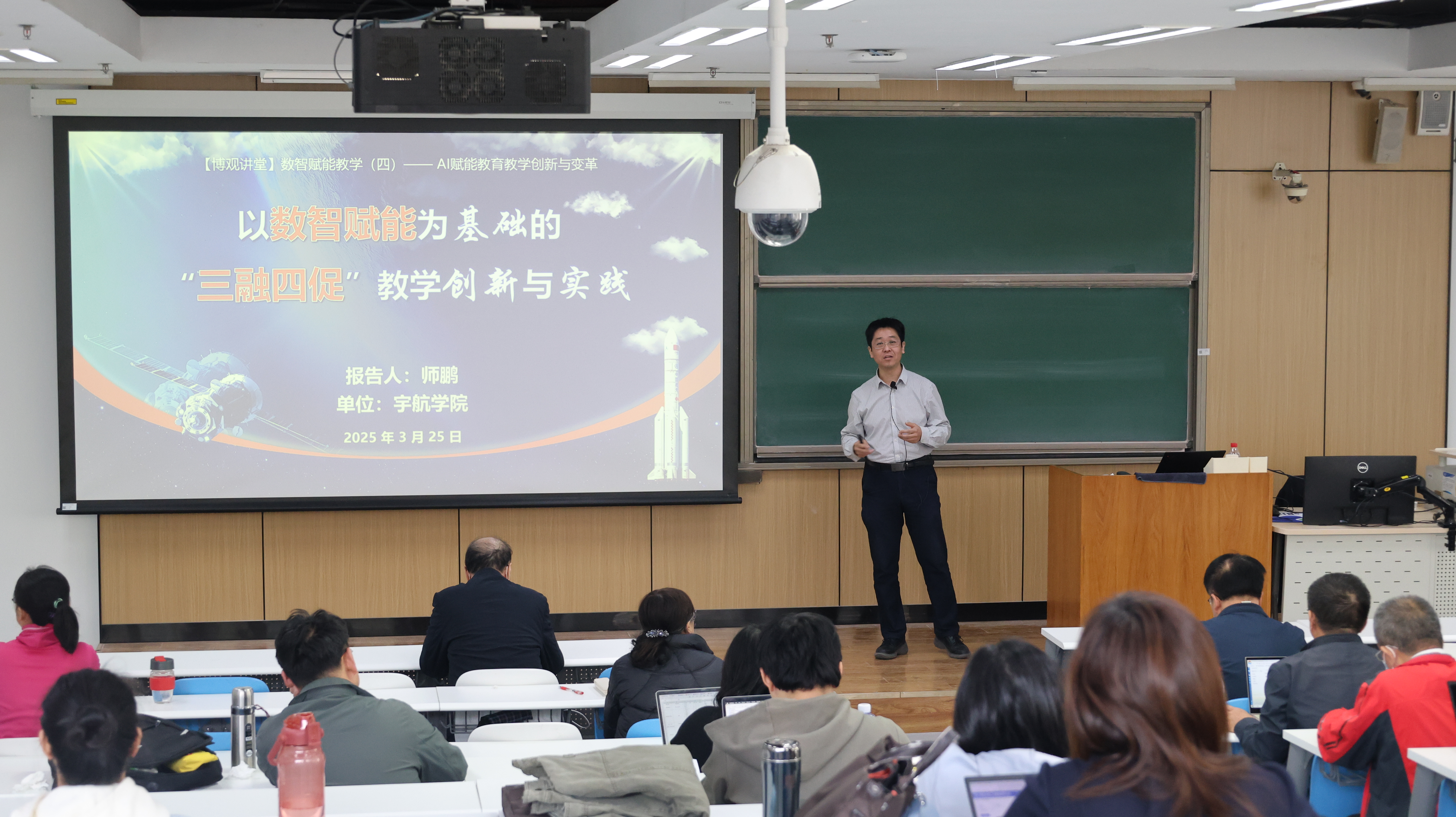 pg娱乐电子游戏官网入口宇航学院副院长师鹏教授带来主题培训—以数智赋能为基础的“三融四促”教学创新与实践。师鹏教授“以飞行动力学”基础专业核心课为例,讲述如何数智赋能课程建设和教育教学,以研发设计软件、建设虚拟仿真实验平台、整合数字课程资源、建立智能评估系统为抓手,推动教学全链条智能化,用AI工具提升学生学习效率、课程学习效果,拓展学生的学习深度和广度,探索个性化、互动性、开放式的教学模式,为传统课程改革提供新思路,为传统教学提质升级,为学校人才培养打造新引擎。