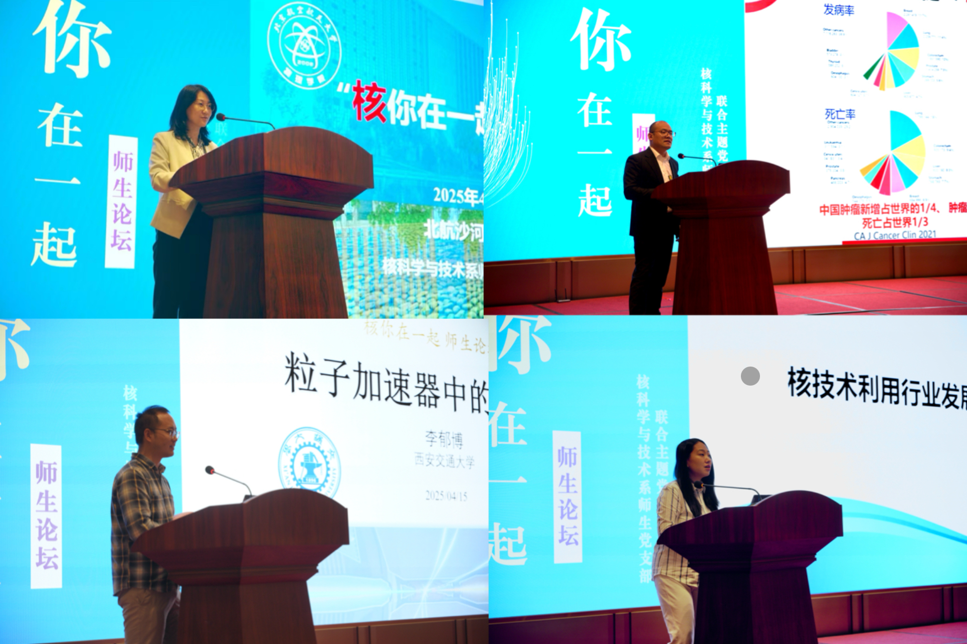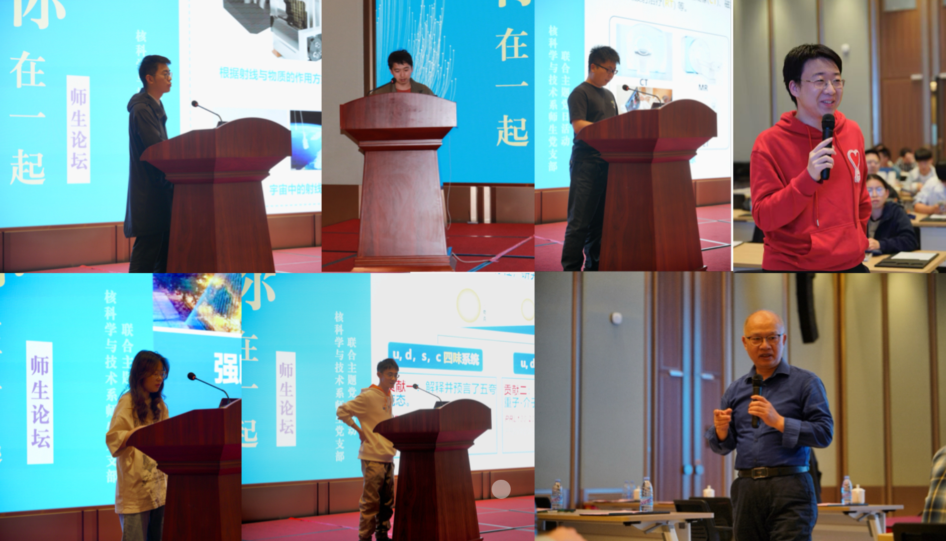 随后,五位研究生代表分别从实验核物理、理论物理、粒子物理、核技术应用和医学物理五个研究方向作了精彩报告,展示了核系学生在科研工作中的最新成果和创新思维。报告内容涵盖前沿技术、理论探索与实践应用,充分体现了核系学生的科研能力与学术潜力。