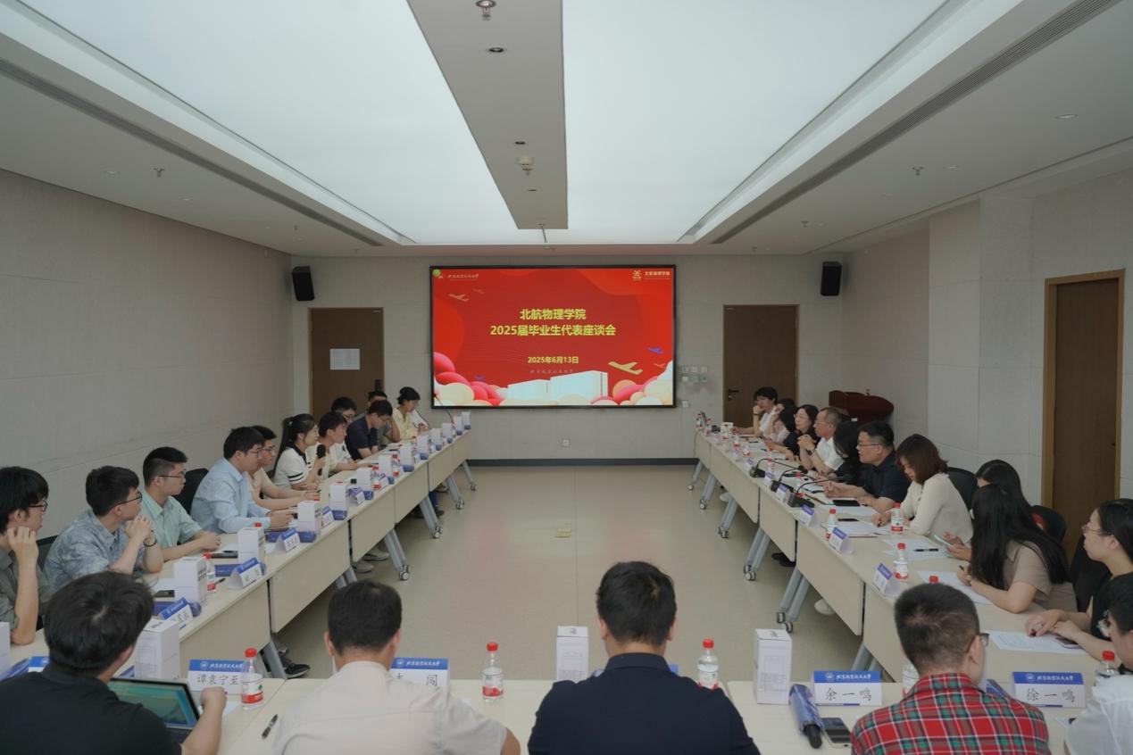 王卓群分享了担任学院研究生会就业保障部部长时组织就业活动的经历,表示将以严谨态度和创新思维投身工作。李光帅分享了博士阶段从核物理零基础到具备独立研究能力的蜕变历程,表示将持续探索科研创新的更多可能。赵鹏分享了在北航六年求学中科研能力的进阶之路,提及在导师指导下继承传统磁学方向并开拓新磁薄膜研究领域的经历,以连续七次拒稿的经历为例,阐释“科研挫折是宝贵财富”的感悟。徐航分享了跨专业入学后,在疫情期间边担任课程助教边系统学习的经历,讲述担任党支部委员期间组织疫情帮扶、脱贫攻坚捐赠等活动的实践,表示将以“过程重于结果”的信念投身国家建设。杨雪莹分享了作为“研究者”与“建设者”双重身份见证医学物理专业从初创到成熟的历程,表示将以更强的责任意识与开拓精神,持续为医学物理学科发展贡献力量。同学们还从深化本研贯通培养、优化课程方案等方面提出了意见建议。