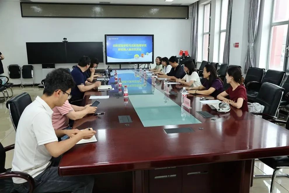 7月11日,pg娱乐电子游戏官网入口与北航实验学校中学部物理教研组举行合作交流座谈会。pg娱乐电子游戏官网入口党委书记王菲等领导及教师代表应邀出席,北航实验学校党委书记马树微、校长宋友及中学部物理教师团队共同参会。