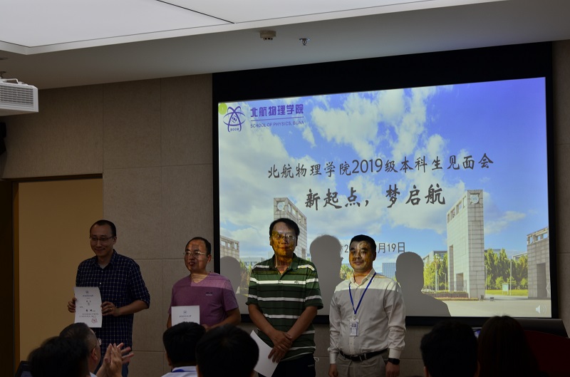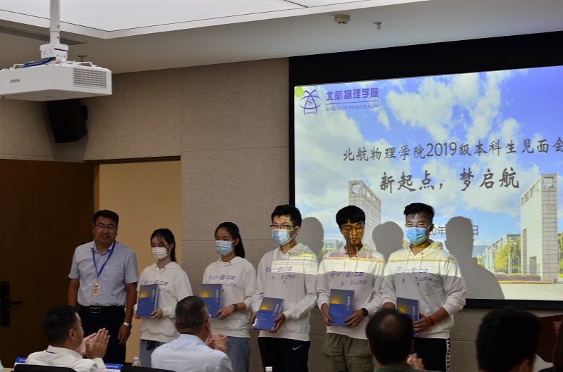 大会第六项,李广超书记向2019级新生代表赠书《航路物语》,希望同学们可以在书中了解到物院师生的故事,感悟物理人求真务实的精神,激励自己不断砥砺奋斗,实现自我价值,做有气质的物理人。