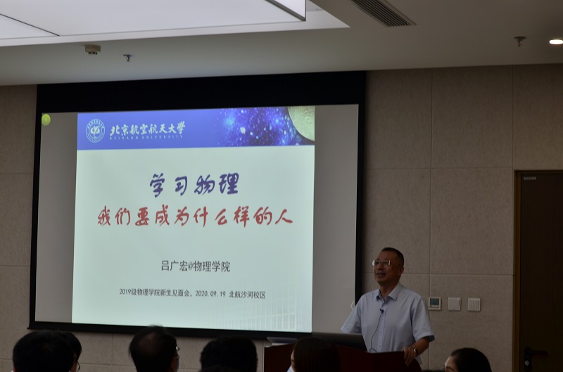 大会第一项,吕广宏院长带来了名为《学习物理我们要成为什么样的人》的讲话,为2019级同学们讲解了大学发展历史和职能,对同学们提出了殷切期望,希望大家能够具有诚实、求真、质疑、开放、包容、合作的科学精神,胸怀高远理想,走好人生之路。