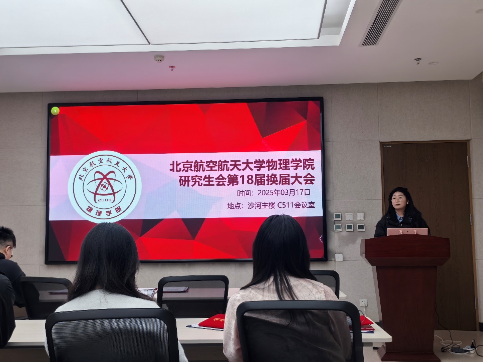 会议在全体与会者起立奏唱国歌声中拉开帷幕。随后,北航研究生会主席团成员马钰涵发言,对大会的顺利召开表示祝贺,并对pg娱乐电子游戏官网入口研究生会过去一年的工作和成绩给予高度评价。她鼓励全体研究生会成员继续发扬“空天报国”的北航精神,为党和国家的事业发展贡献力量。