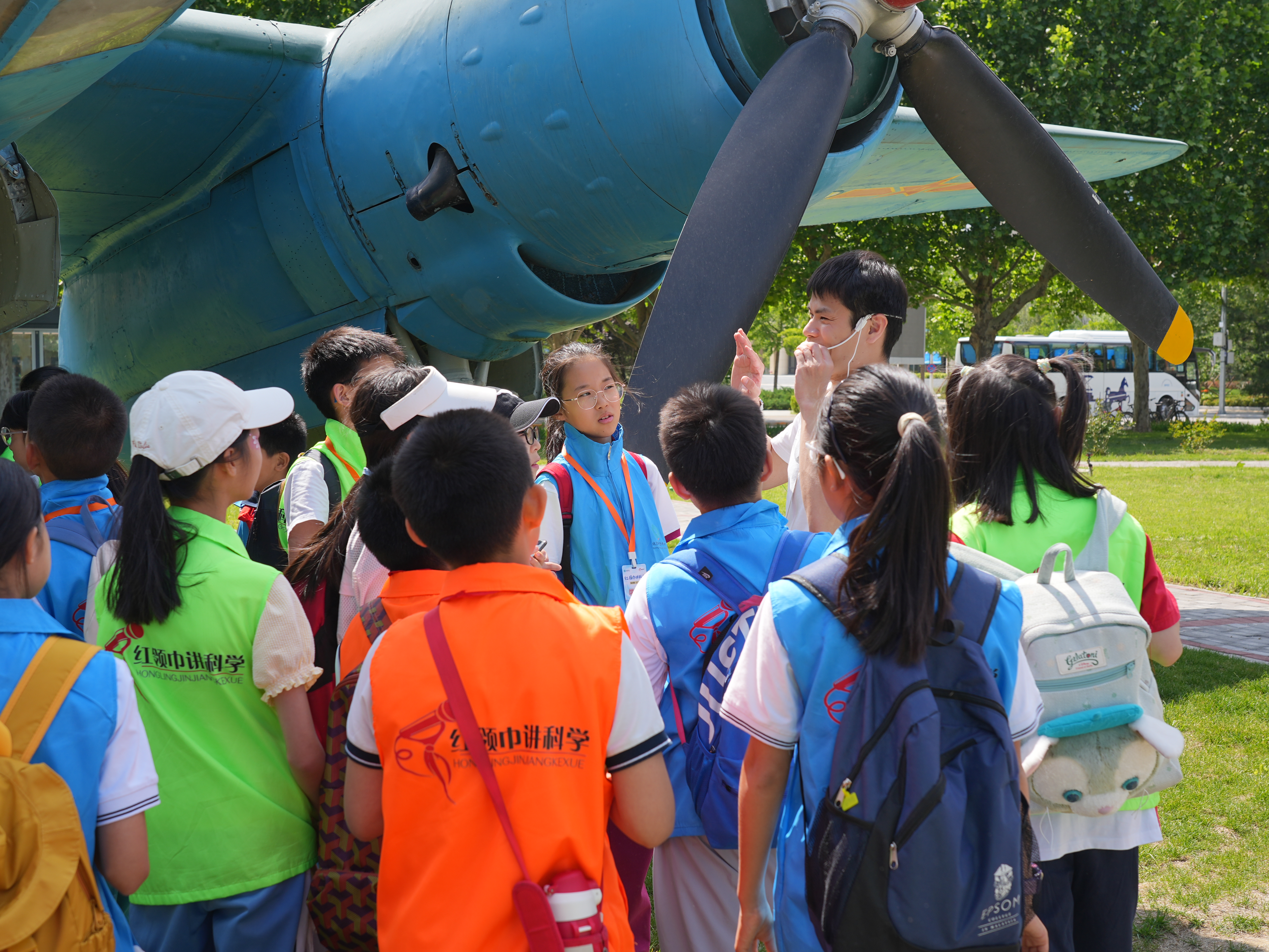 活动伊始,师生们参观了北京航空航天博物馆沙河馆室外展区。14架实体飞机展品吸引了孩子们的目光。讲解员以“北京一号”、“运-8型多用途运输机”为切入点,将我国航空事业发展历程与北航人“空天报国”精神娓娓道来。活动中,随行支部党员充分发挥专业优势,针对孩子们提出的各类问题进行专业解答。从“飞机为什么能飞起来”到“飞行员怎么开飞机”,党员们用严谨而不失生动的语言,将复杂的航空知识转化为易于理解的科普内容。