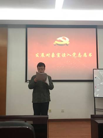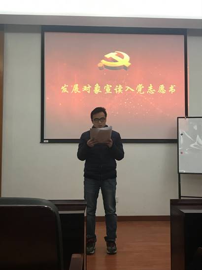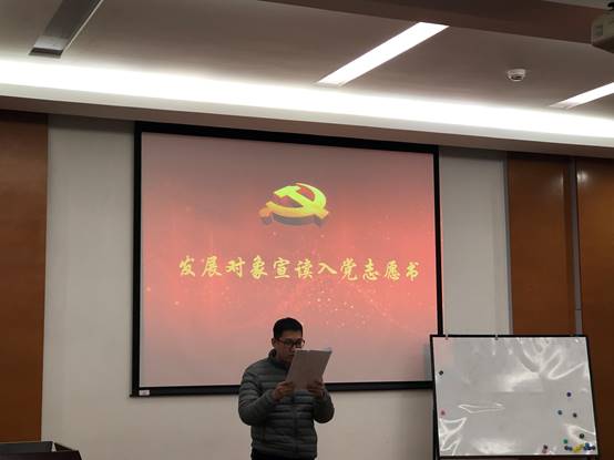 按照会议流程,4名发展对象依次介绍了自身情况,宣读了入党志愿书,入党联系人也针对每名发展对象的优点和不足做出了客观的评价,支部委员汇报了政治审查情况,与会党员充分讨论并发表意见后进行了投票表决。经过现场计票商艳静、潘珩、郑辉斌、蒋昭毅共4名发展对象均全票通过。大会决定,同意接收此4名同志为中共预备党员。