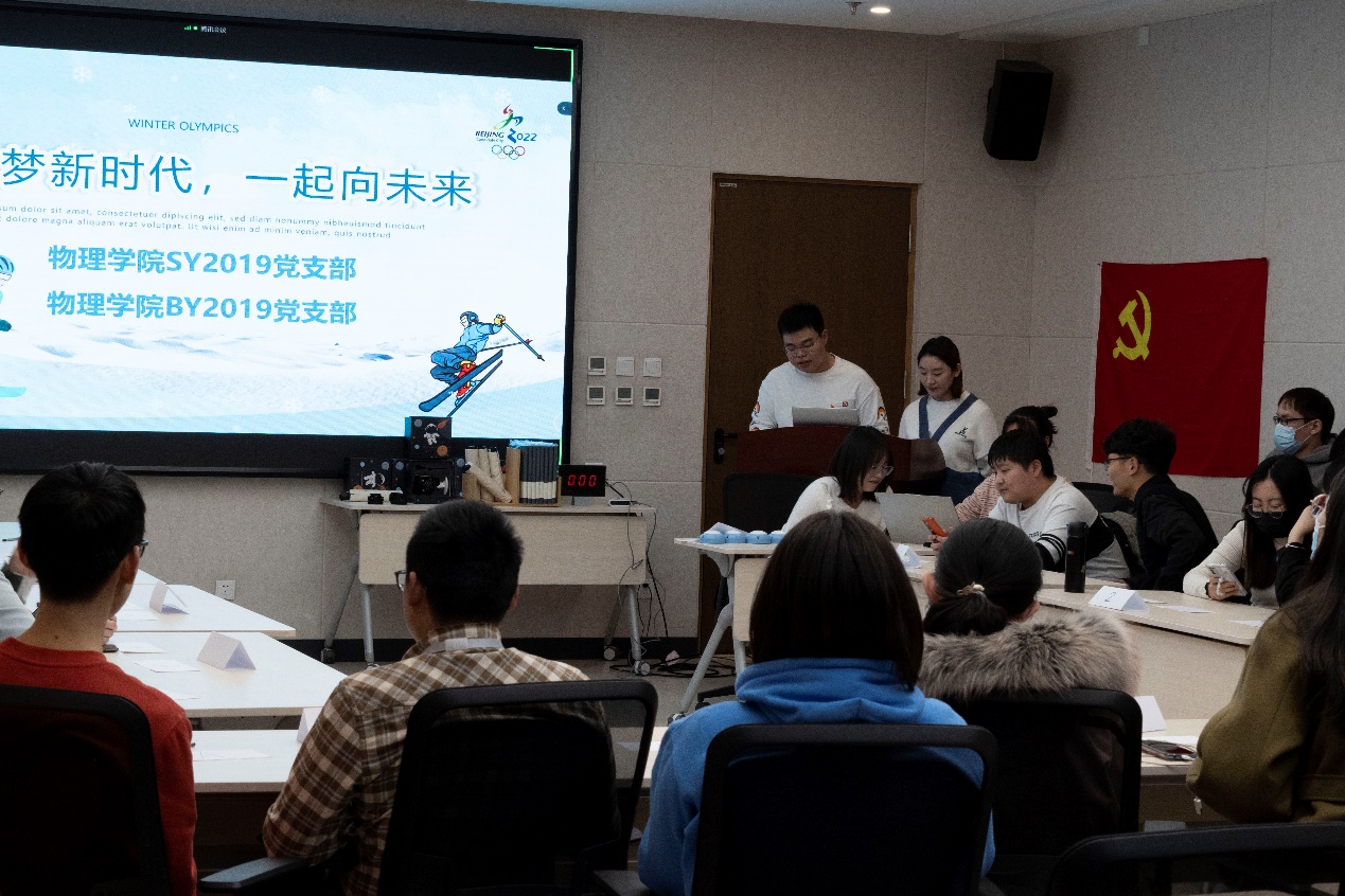 2022年北京冬奥会、冬残奥会是展现国家形象、促进国家发展、振奋民族精神的重要契机。为进一步弘扬、践行中华体育精神,传播奥林匹克文化,传递奥林匹克精神,2022年3月17日晚上,pg娱乐电子游戏官网入口SY2019党支部与BY2019党支部在沙河主楼C座511联合举办了“逐梦新时代,一起向未来”主题党日活动。