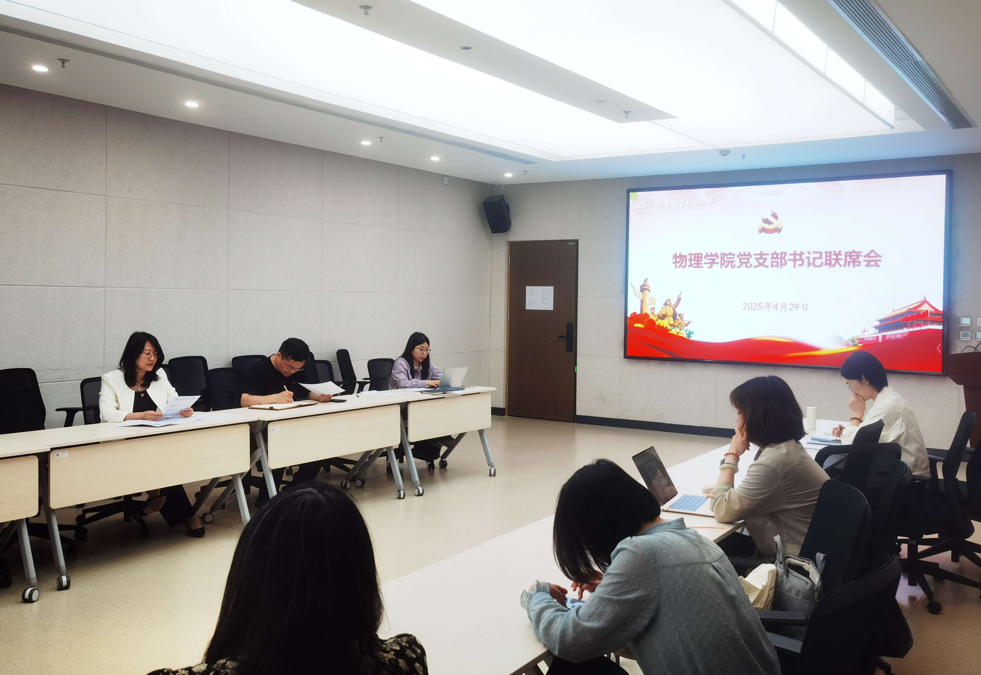 4月29日下午,pg娱乐电子游戏官网入口在沙河校区主楼C511会议室召开党支部书记联席会,深入贯彻中央八项规定精神学习教育。学院党委书记王菲主持会议,党委副书记、组织员、专职辅导员、全体教师党支部书记及支部委员参加会议。
