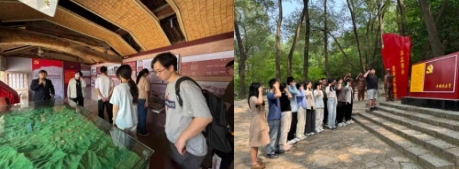 活动最后,支部党员一行来到昌延联合县政府旧址——平北地区第一个抗日民主政权所在地。通过讲解员生动详实的讲述,大家了解到昌延联合县政府在抗战时期为配合冀热察挺进军战略部署、团结地方群众、支援前线斗争所发挥的重要作用。在这片凝结着热血与信仰的红色土地上,全体党员在鲜红的党旗下庄严肃立,由应用物理系博士党支部书记刘雷轶男领誓,重温入党誓词。一句句铿锵誓言,激荡着每一位党员的心灵;一声声庄严承诺,凝聚起忠诚与担当的力量。