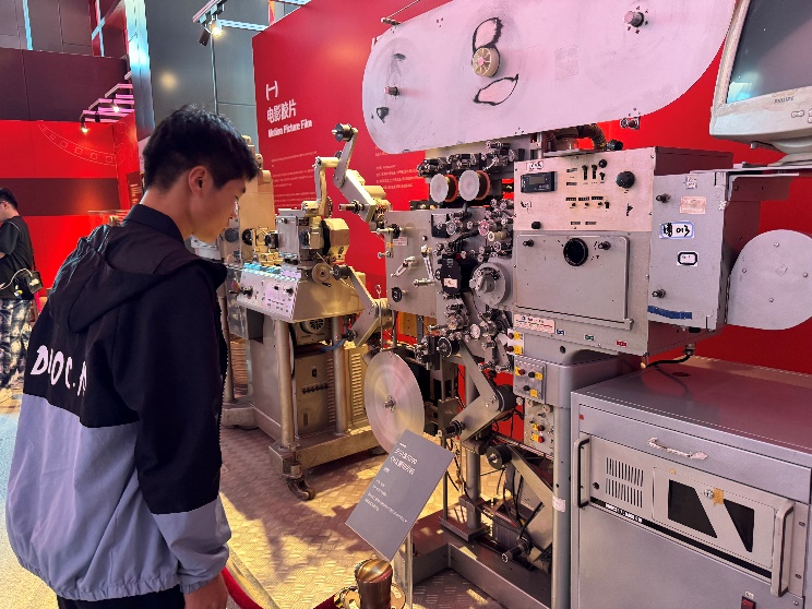 随后,党员们走进了电影设备展区,深入了解电影技术的发展变迁。展区内陈列着从早期的手摇胶片放映机到现代化数字电影拍摄设备的代表性器材,琳琅满目的摄影机、录音设备、剪辑工具等实物,生动展现了电影工业从无到有、从手工操作到智能化制作的发展历程。通过近距离接触这些承载时代记忆的电影设备,大家不仅加深了对中国电影科技发展的认识,也更深刻体会到一代代电影工作者精益求精、追求卓越的工匠精神。
