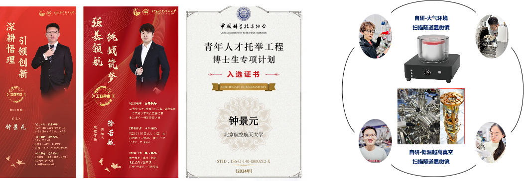 持续建设育人平台,学业导师6人,研究生思政导师4人,充分发挥导师在导学、导心、导向、导行方面的作用。团队本科生在二维材料、扫描隧道显微镜开发、低维异质结构研究等领域开展研究工作,获得包括第十六届、十八届、十九届“挑战杯”全国大学生课外学术科技作品竞赛特等奖三项(破全国纪录)、第十二届北京市大学生物理实验竞赛一等奖、北航“冯如杯”学生学术科技作品竞赛一等奖等国家级奖项3项,省部级10项。过去三年,团队研究生获得“青年托举”项目、国家奖学金、北京市优秀毕业生、北航“五四”奖章、国家奖学金、pg娱乐电子游戏官网入口优秀博士一等奖学金、pg娱乐电子游戏官网入口博士研究生卓越学术基金等项目及荣誉50余项。