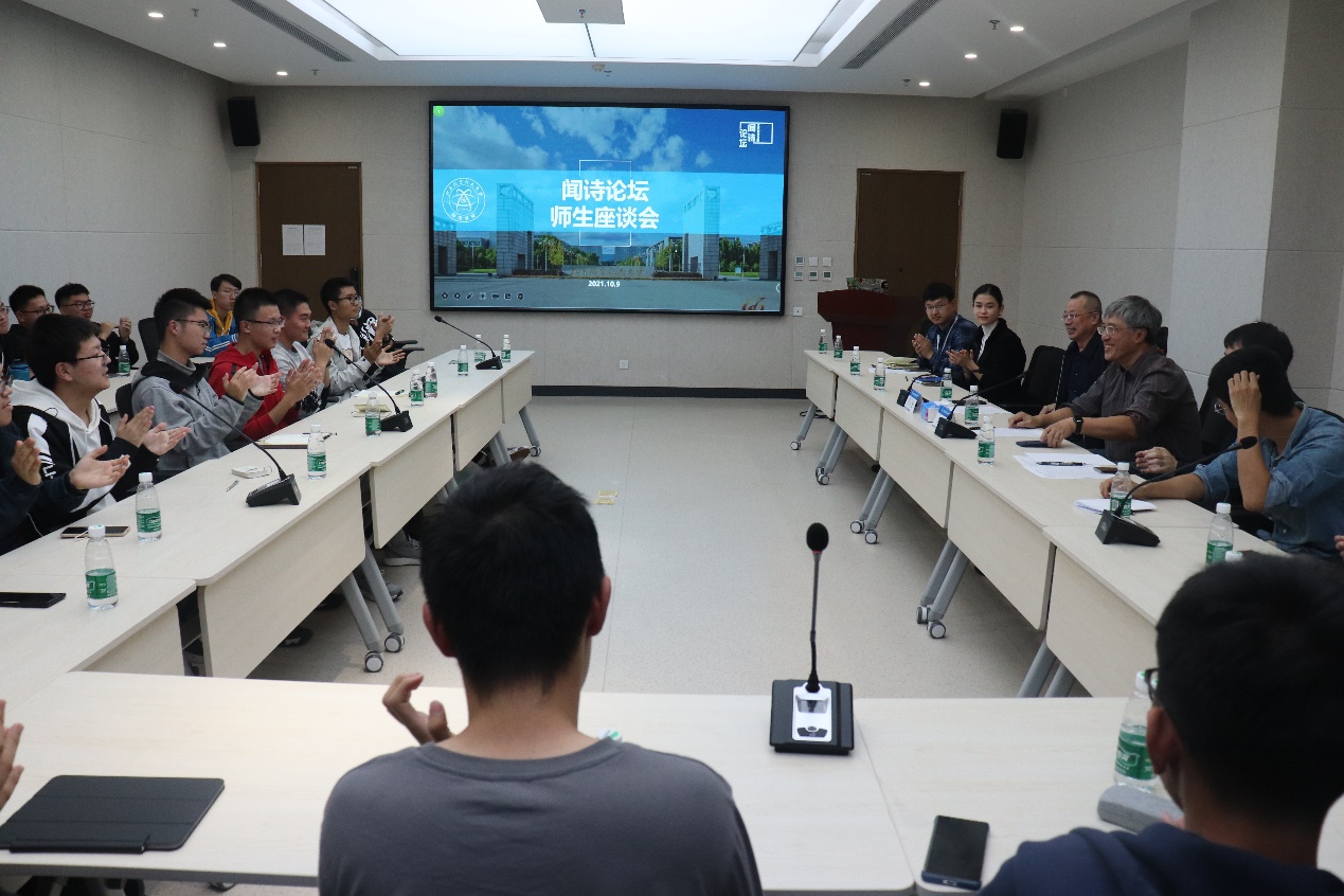 论坛结束后,高原宁院士在沙河主楼C511与pg娱乐电子游戏官网入口师生进行了座谈,同学们从学业困惑、人生选择、职业规划等各方面向高院士提出了问题,高院士耐心解答,他勉励同学们要坚守选择物理学习的初心,保持对物理研究的热爱,学好基础课程,学会深入思考,放下焦虑,享受大学的精彩生活。在同学们的掌声中,本次精彩的座谈落下帷幕。