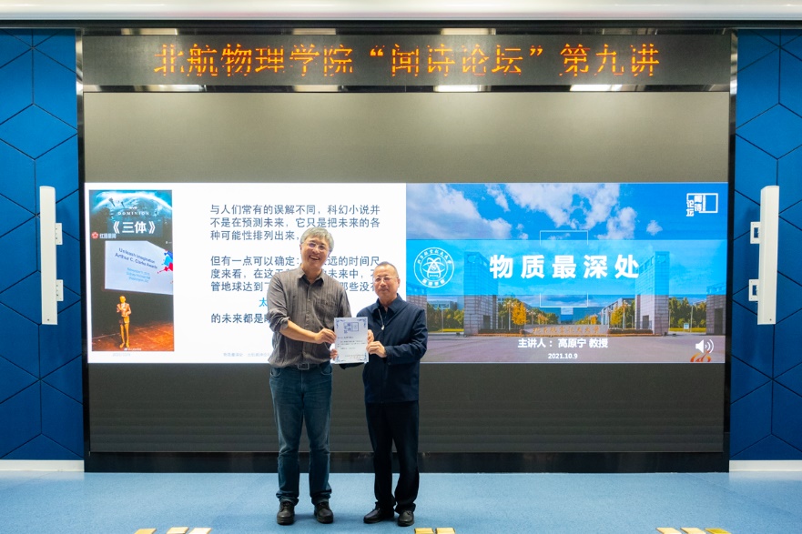 首先,北航pg娱乐电子游戏官网入口吕广宏院长发表了热情洋溢的致辞,并隆重介绍主讲老师高原宁院士。高原宁院士1983年毕业于北京大学物理系,获理学学士学位;1989年毕业于北京大学物理系,获理学博士学位,而后主要从事高能对撞机上的粒子物理实验研究。高原宁院士团队在2017年首次观测到双粲重子,入选“2017年度中国科学十大进展”;2015年LHCb组首次观测到五夸克粒子,被科学杂志,美国物理学会“物理”网站Physics - Highlights of the Year (aps.org)等评为年度物理学重要进展。